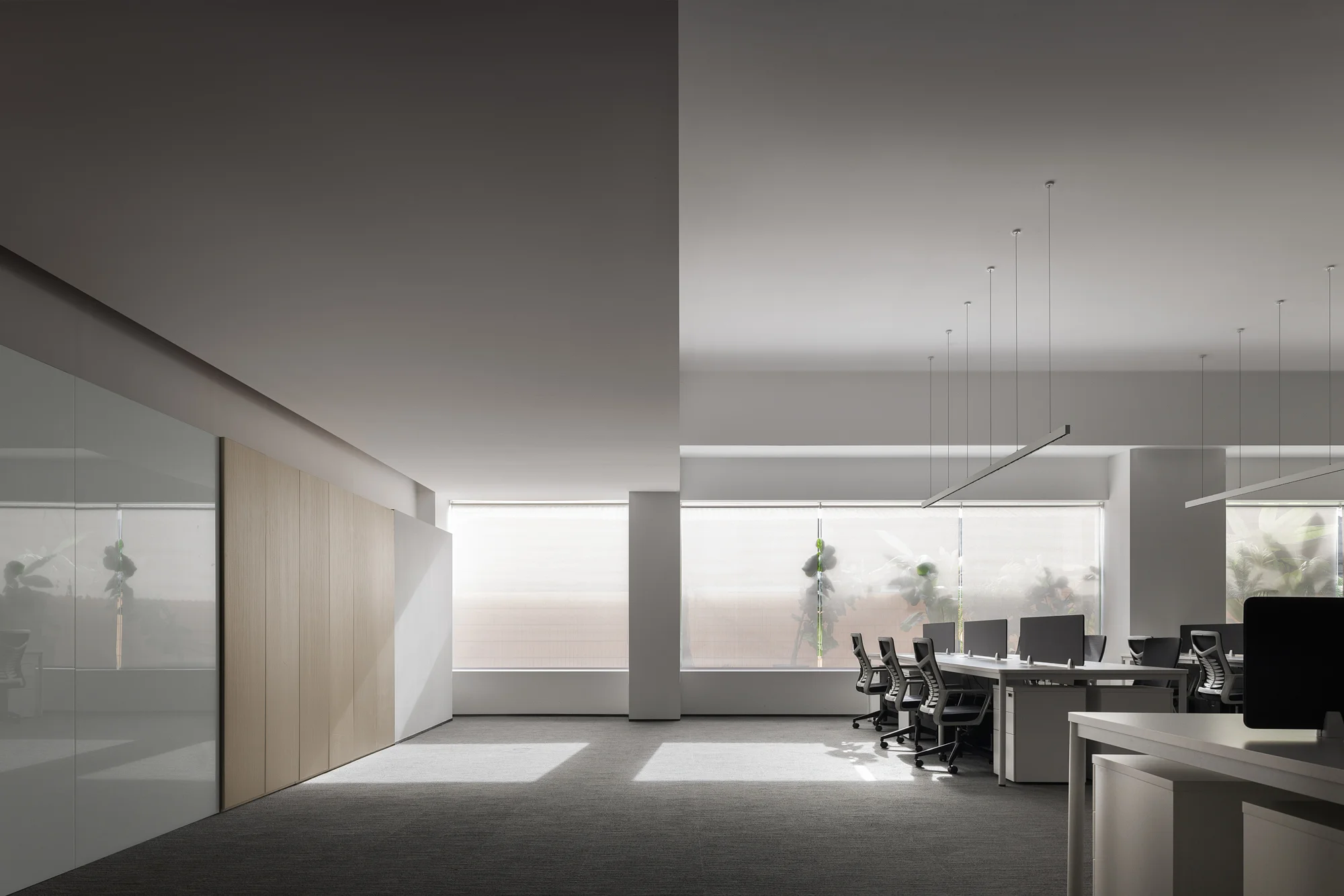 Headquartered in Foshan, where tradition meets innovation, PLAIN HOMELAND has reimagined a 5,000m2 modern workplace. Dissolving boundaries like mist at dawn,glass partitions replace solid walls, while sunlight spills unimpeded across collaborative hubs. Every minimalist detail is designed to promote serenity and amplify focus, where boundaries fade to make room for ideas. This is not just an office, but also a space for liberation of mind.